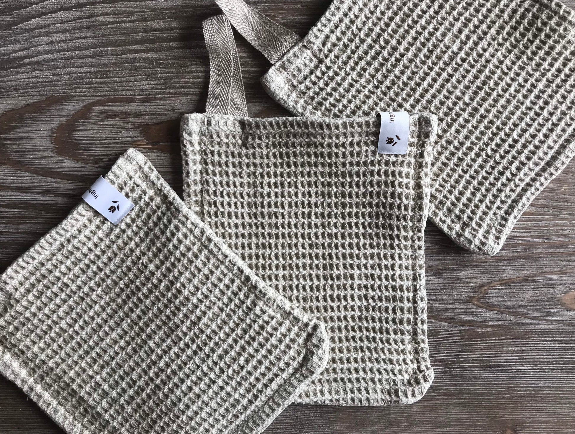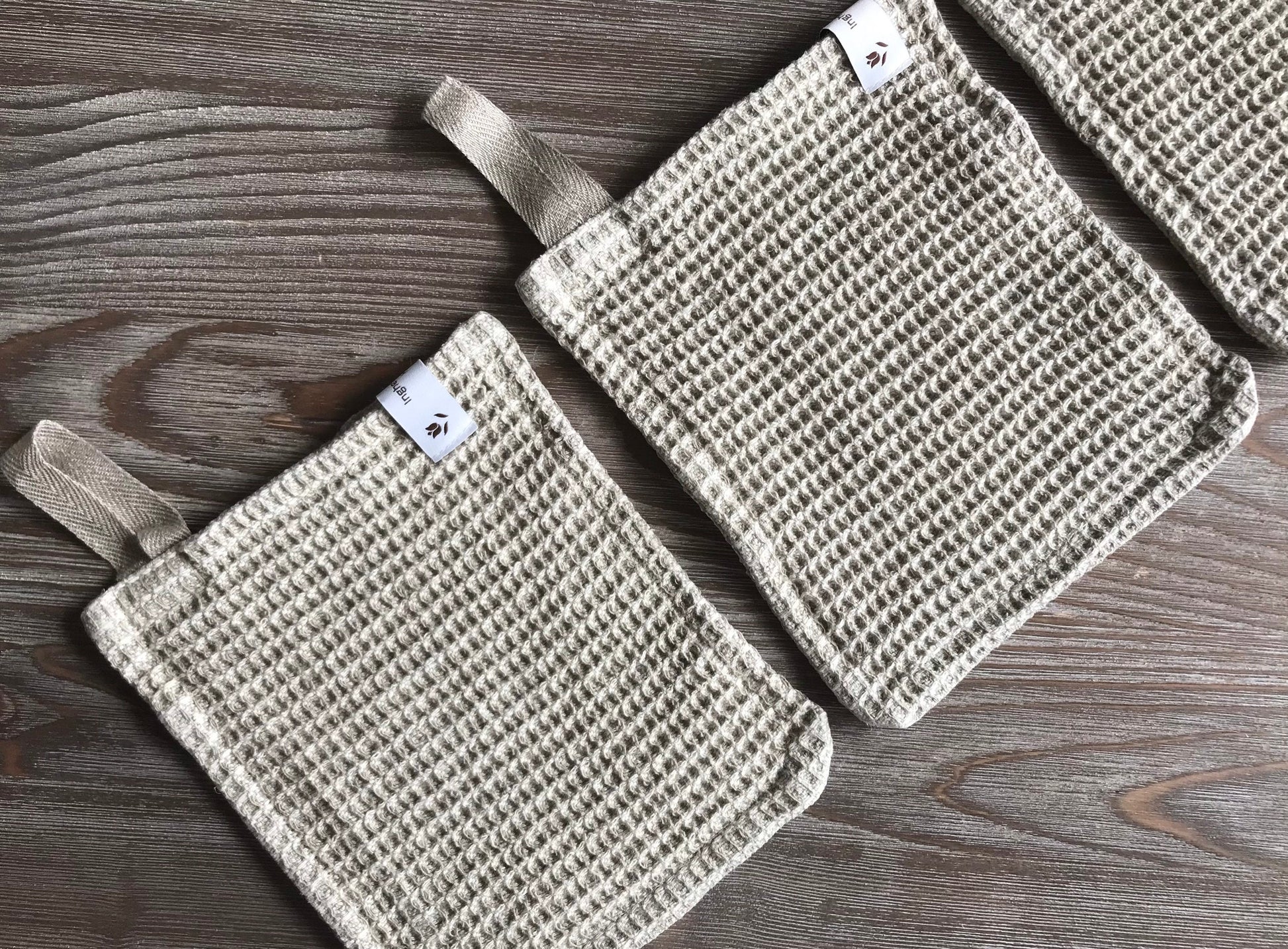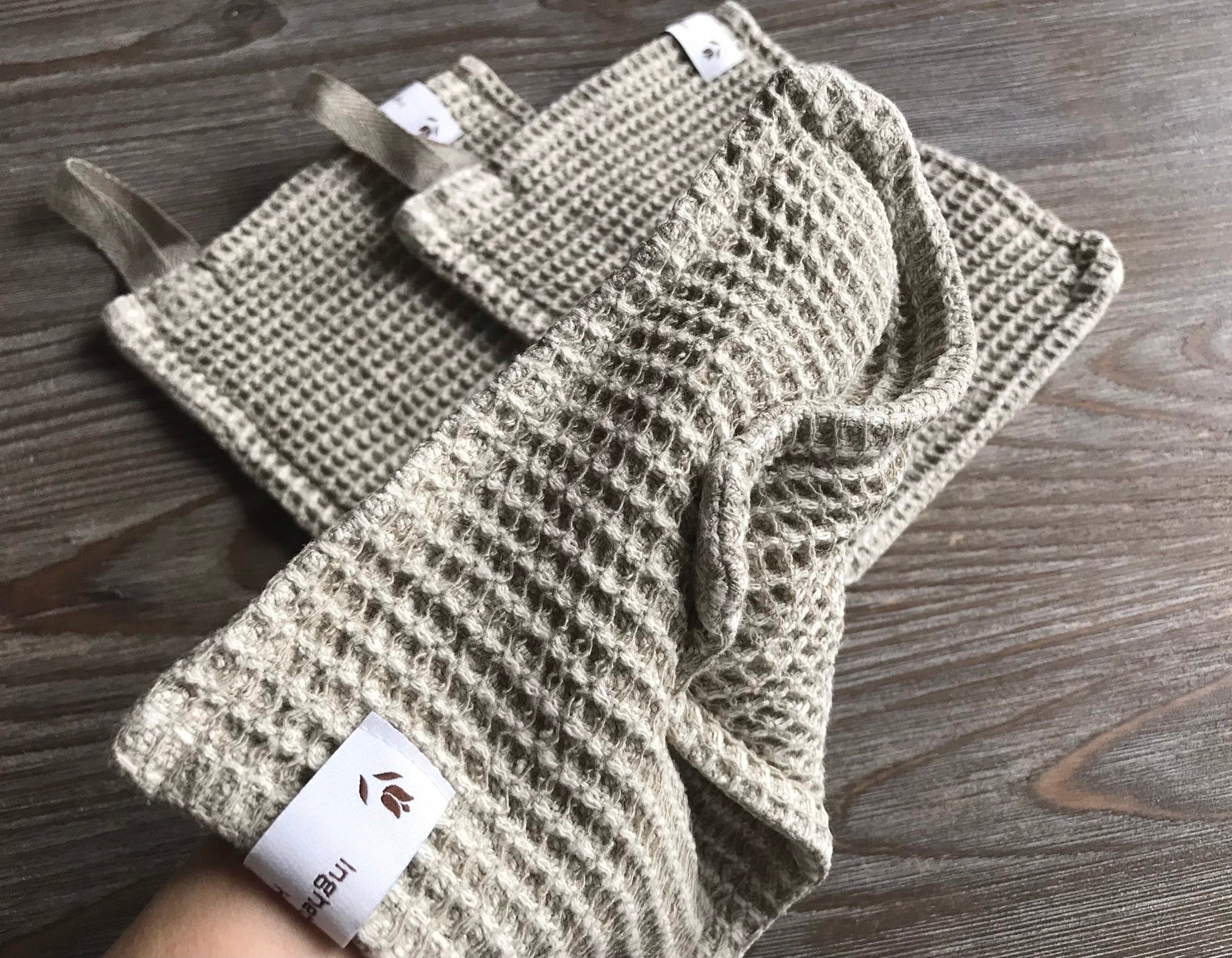 Body wash cloth made from 100% linen waffle fabric. Due to small waffle weave and nature of linen fabric, cloth has nice exfoliating and cleansing effect. Good fit for modern eco-friendly bathroom. Moreover, linen fabric has antibacterial. Handmade in Belgium from European linen.