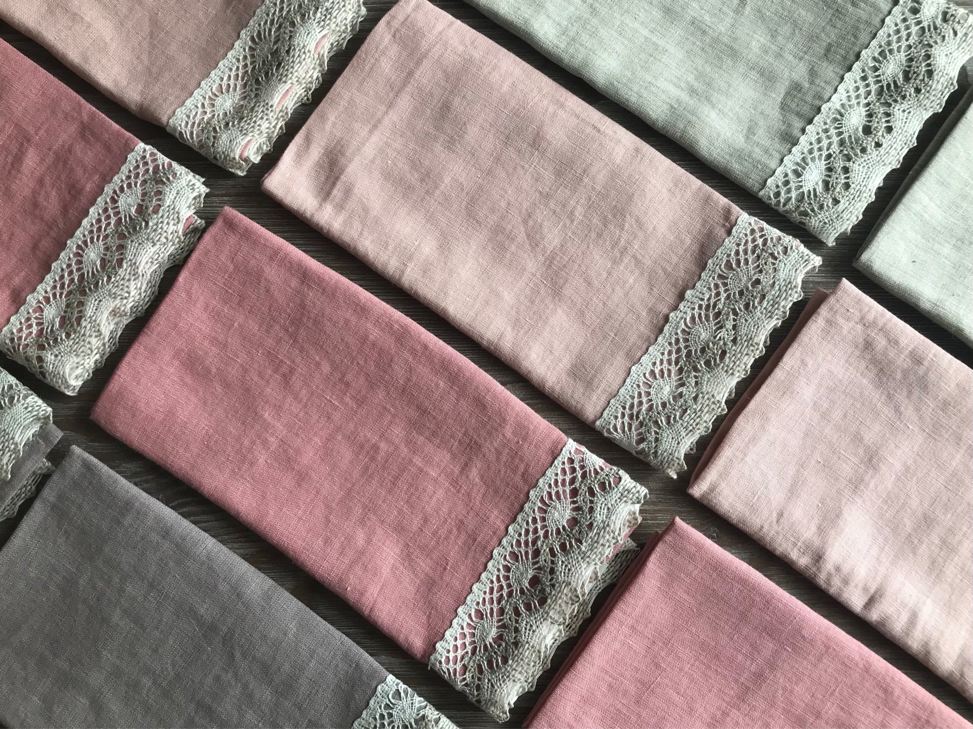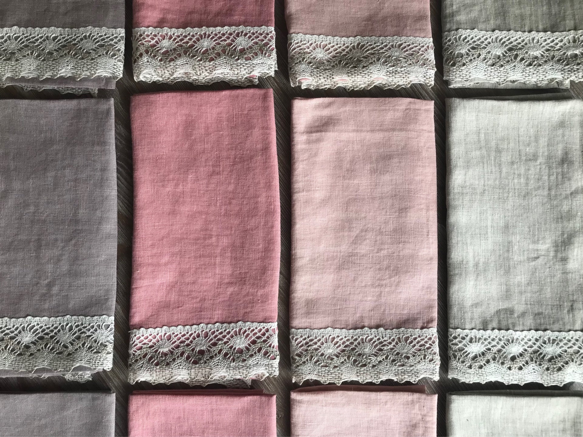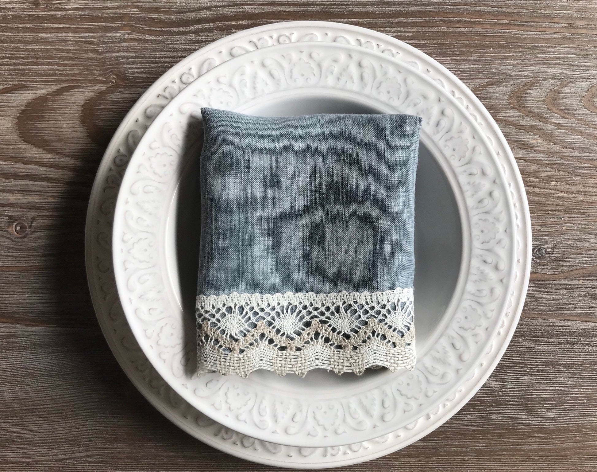 100% linen napkins with 100% linen lace. Different colors are available. Natural eco-friendly napkins that can be centerpiece of your table or lovely eco-friendly gift. Handmade in Belgium from European linen and lace.