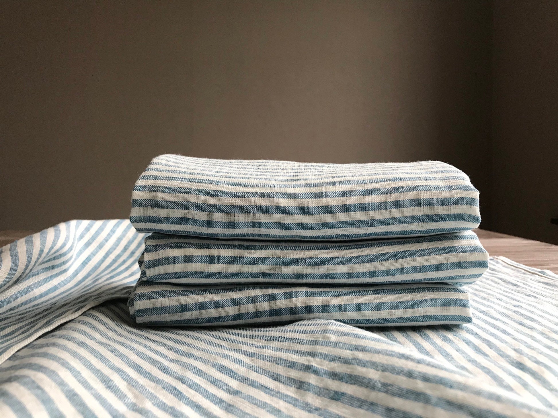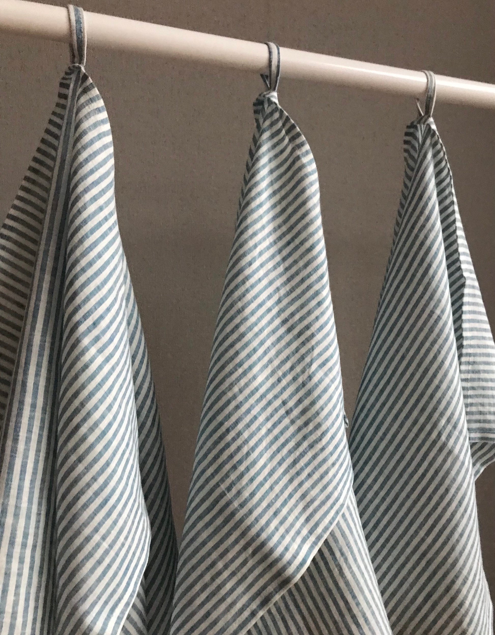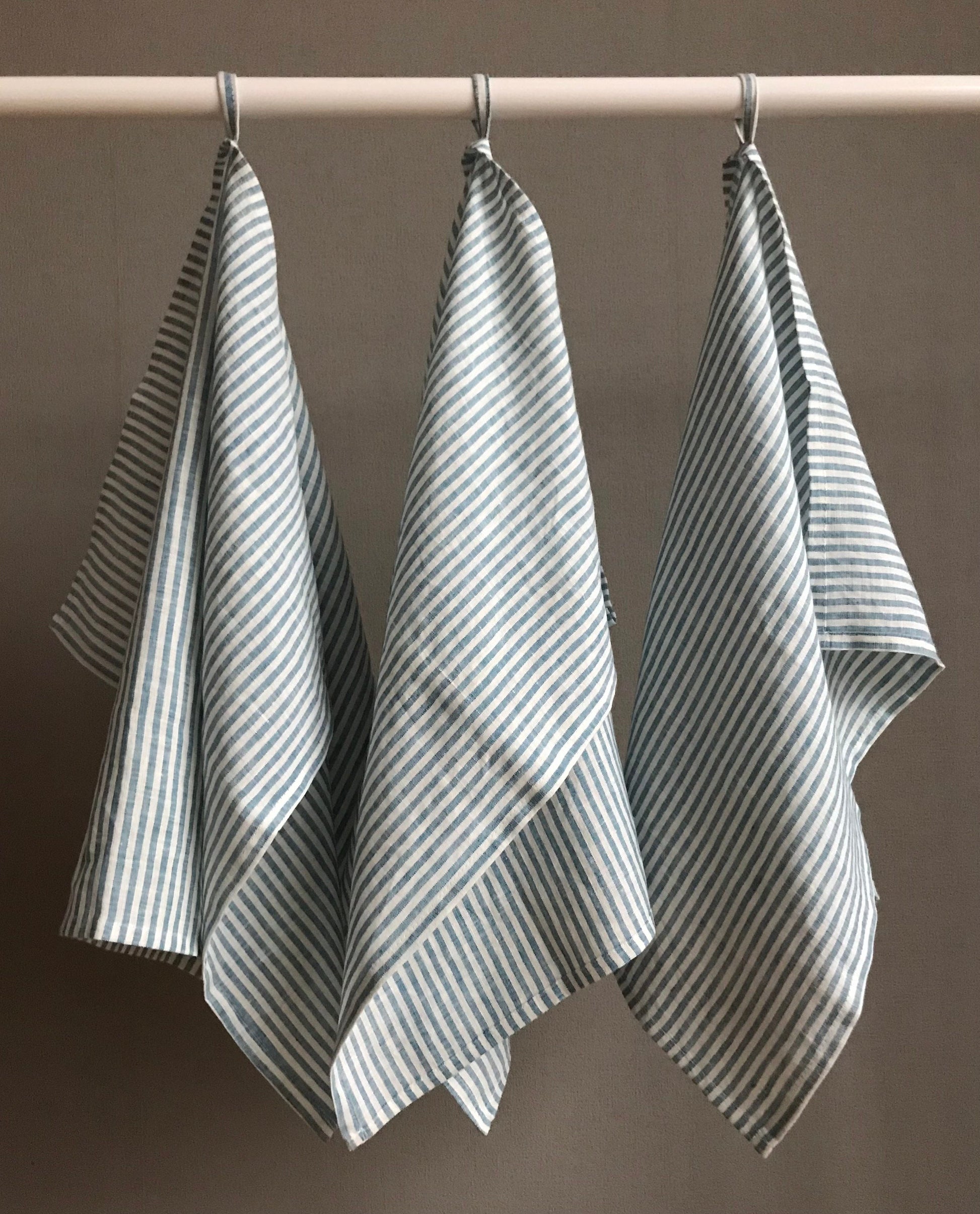 Kitchen linen tea towel with lovely turquoise stripes. Eco-friendly and luxury towel. Linen is new luxury and can be centerpiece of your kitchen space. Handmade in Belgium from European linen.