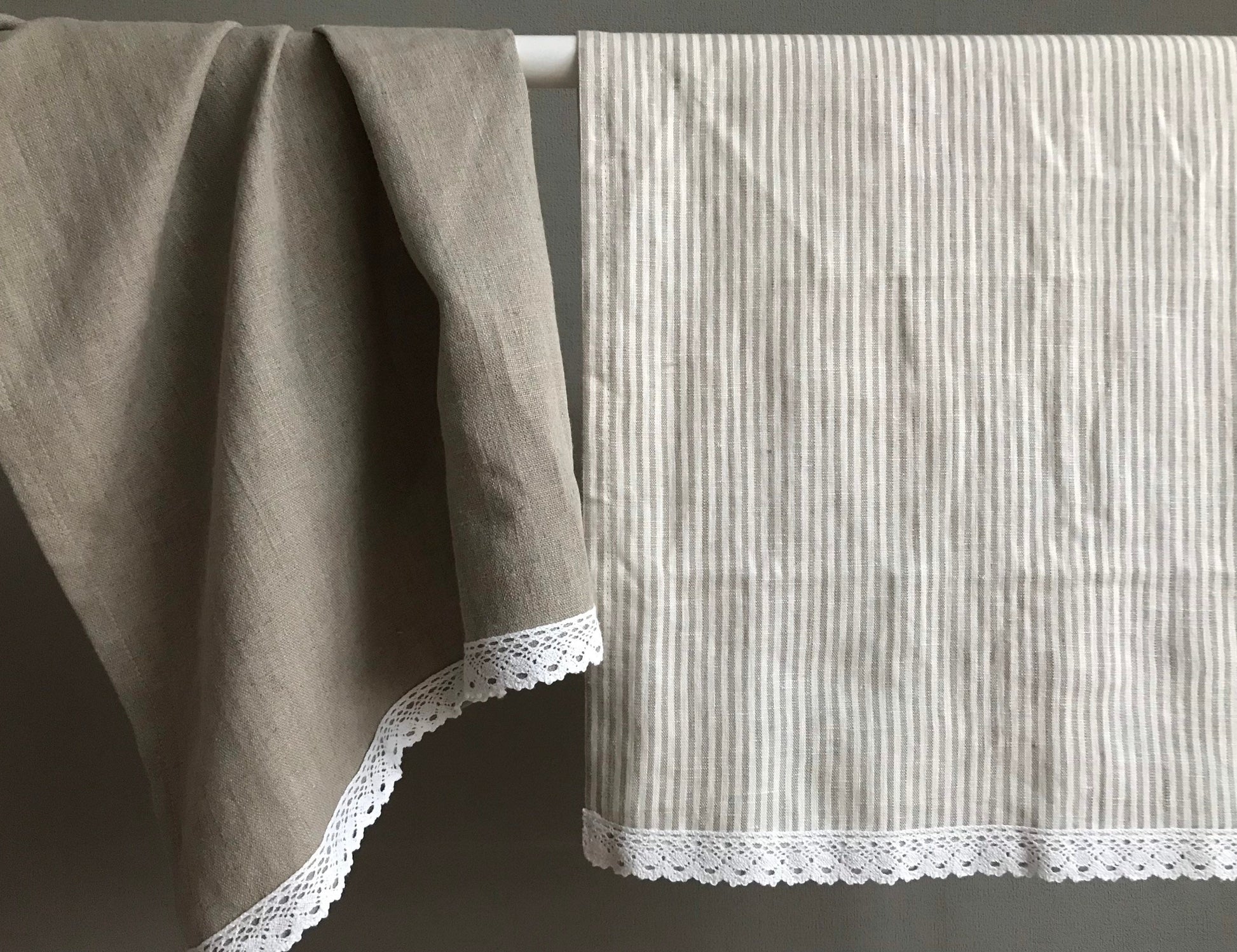 Linen tea towels with cotton lace. Natural eco-friendly luxury towel. Handmade in Belgium from European (Lithuanian) linen.