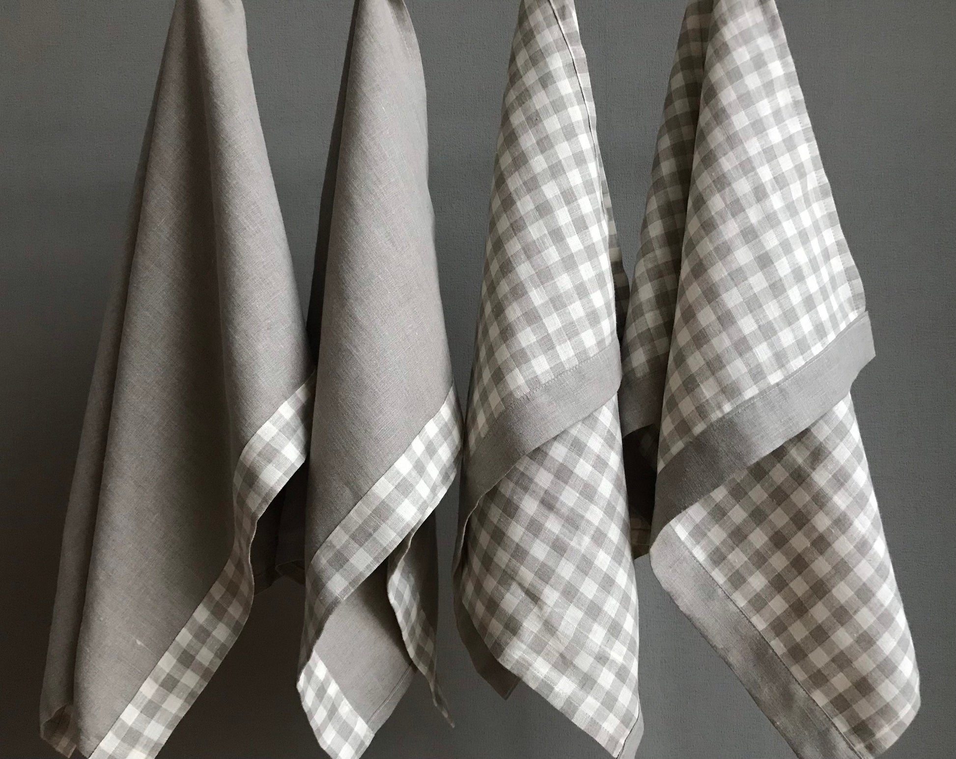 Set of 2 linen tea towels, matching towels of two different design. Handmade in Belgium from European linen.